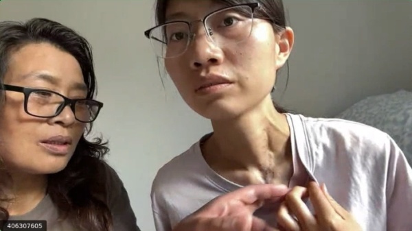 Du Tingxiang and her daughter Zhang Qi recount their harrowing experience of forced organ harvesting, expressing that in China, “no one is safe.” (Video interview screenshot)