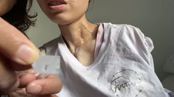 Zhang Qi stated: “They used several [surgical staples], just randomly stapling it. You can still see the staples inside, and I even coughed up one...”