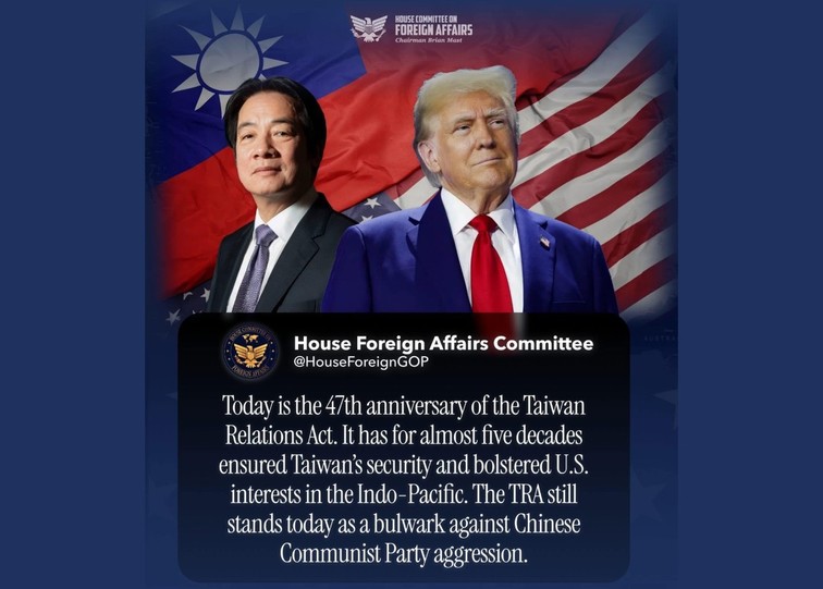 Wu Jialong pointed out that to counter the self-serving calculations and propaganda of the Chinese Communist Party (CCP), the United States has produced a poster featuring Trump and Lai Ching-te together, presented by the House Foreign Affairs Committee to commemorate the 47th anniversary of the Taiwan Relations Act. This effectively serves as an official declaration that the United States will intervene in Taiwan, as this aligns with American interests.