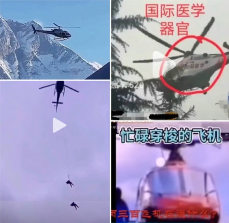 Wang Xiangjun frequently filmed “International Medical” helicopters shuttling back and forth over Tibet’s uninhabited areas, and these helicopters are suspected of transporting organs. (NTDTV composite)