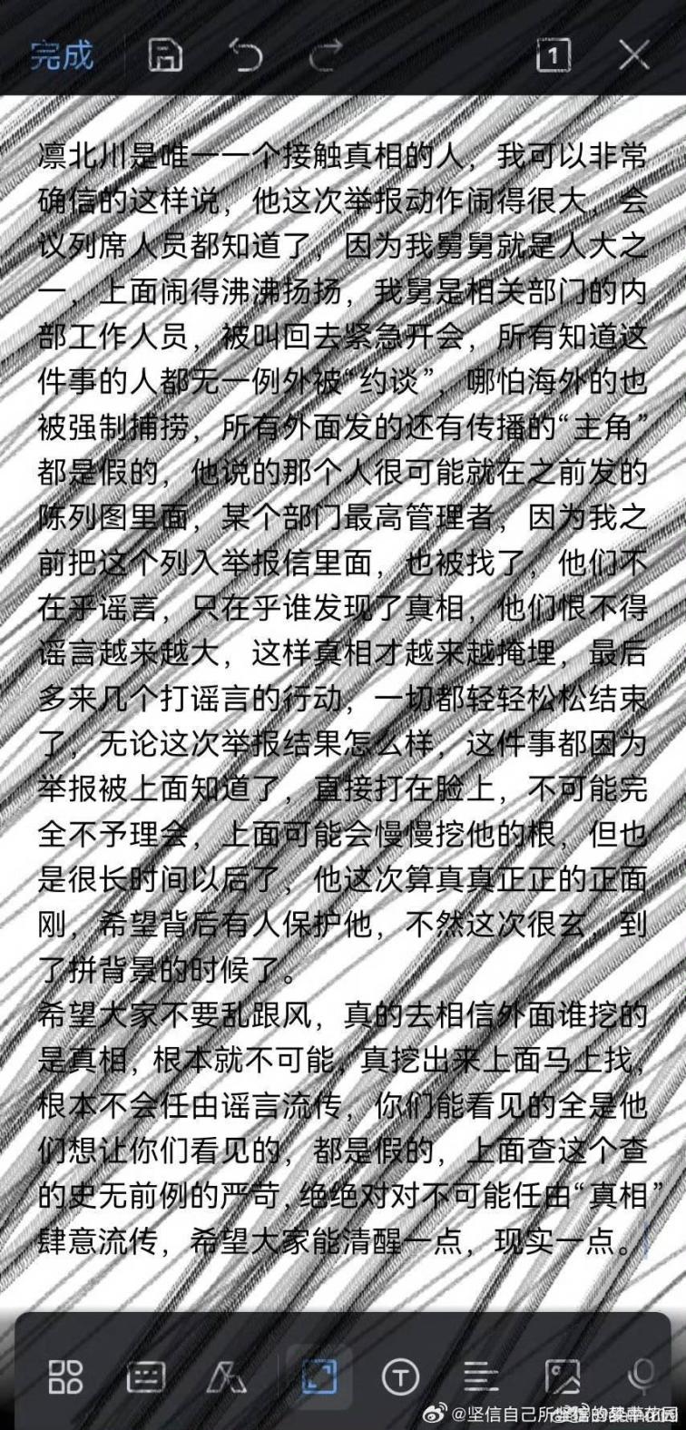 An insider posted information revealing that Lin Beichuan is the only person who has come into contact with the truth. I can confidently state that his reporting has created a significant stir, and all attendees of the meeting are aware of it. My uncle, who works in a relevant department, was called back for an emergency meeting; everyone who knows about this situation has been 'interviewed' without exception.