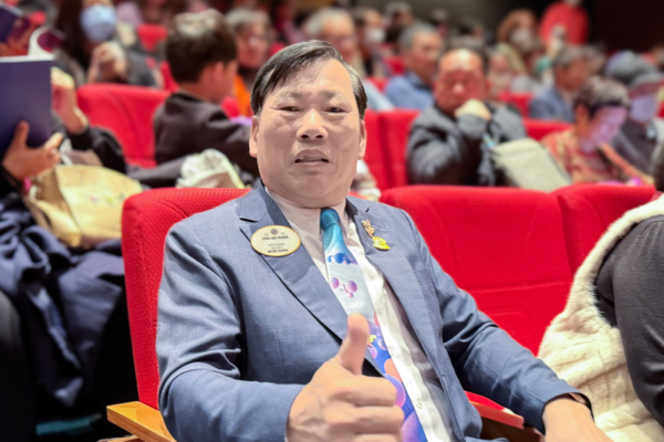 On the afternoon of February 8, 2026, Yang Yikun, honorary chairman of the Taichung Industrial Park Manufacturers Association, watched Shen Yun’s New Era Company’s third performance at Taichung Chungshan Hall. (New Tang Dynasty Television)