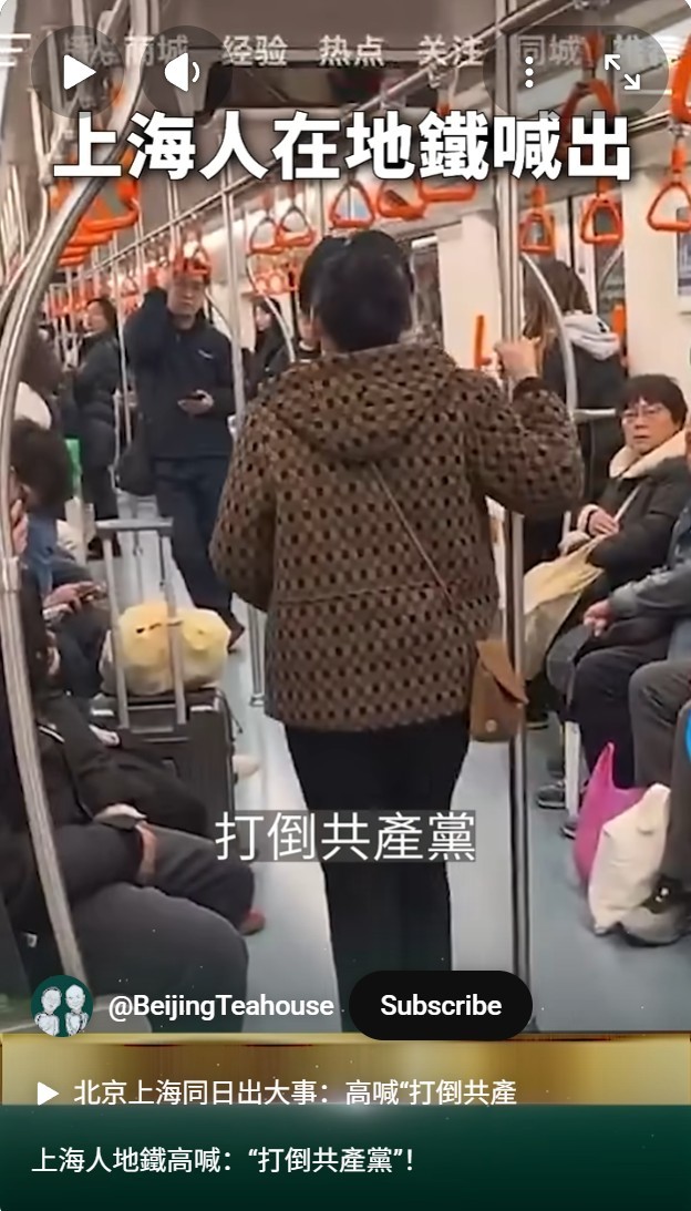 A woman in Shanghai was spotted walking through the subway shouting, 'Down with the Communist Party!' (video screenshot)